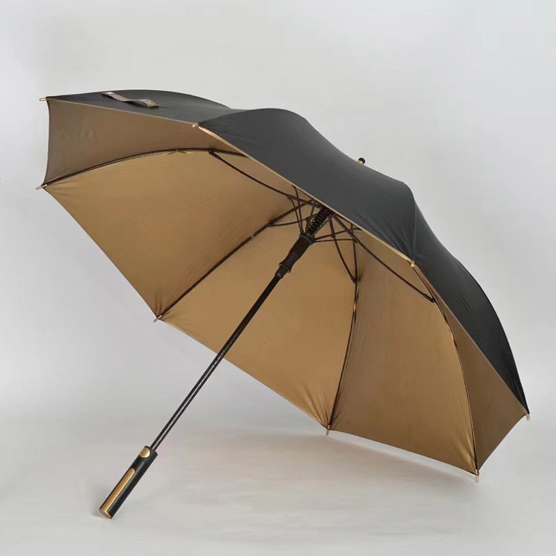 Paraguas de tela recubierta de oro con control semiautomático y mango dorado 11